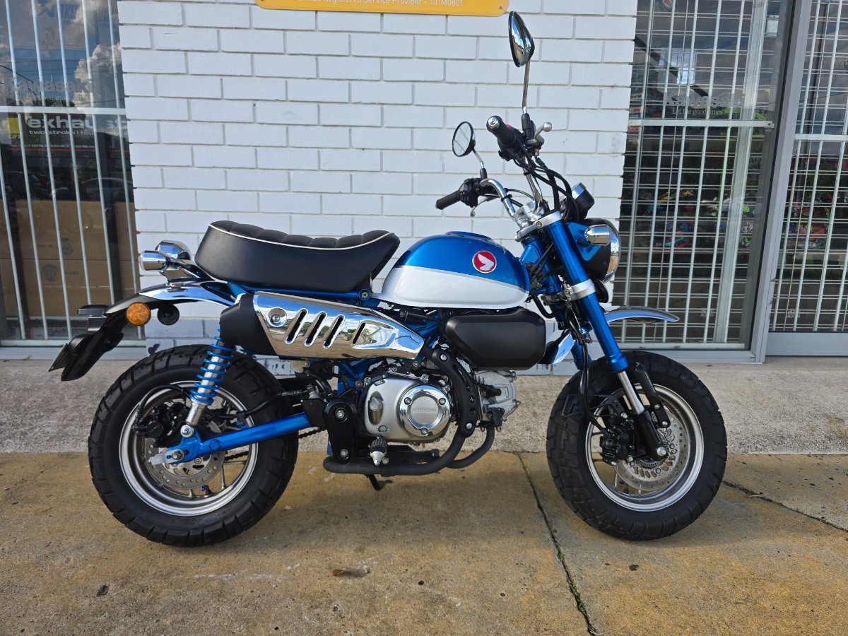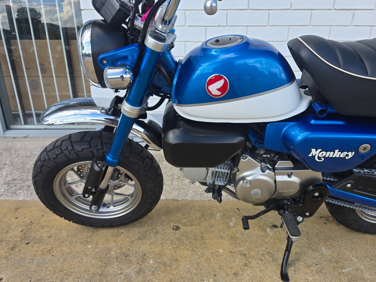 The 2018 Honda Monkey 125 is a lightweight, retro-styled little bike full of fun! Yes thats right! Its got super low kms making this little this one special little monkey! This Glittering Blue monkey can comfortably maintain city and suburban speeds, with top speeds just over 80 km/h. and proved manageable even on highways. It is a real head turner, with its retro styling cues including chromed steel mudguards, exhaust shield, high-rise handlebars, and a glossy 5.6L fuel tank painted to match frame and swingarm. It has got rego till april 2026, with 2 keys and ready to go! With up to a 3 year mechanical protection plan and the most competitive finance and insurance packages available, as Australia?s largest motorcycle retailer no one makes it easier to purchase a Learner Approved Motorcycle. Plus we can organise to have your bike delivered directly to your door anywhere in Australia through our dedicated motorcycle freighters. This Approved Used Bike comes with a 49-Point Quality Inspection, 2-Day FREE Exchange and 90 Day Mechanical Protection Plan extension when you purchase a 1, 2 or 3 year plan. Ensuring peace of mind, ease & convenience. An Approved Used Bike is the best choice in Australia for your next bike. Why buy elsewhere?