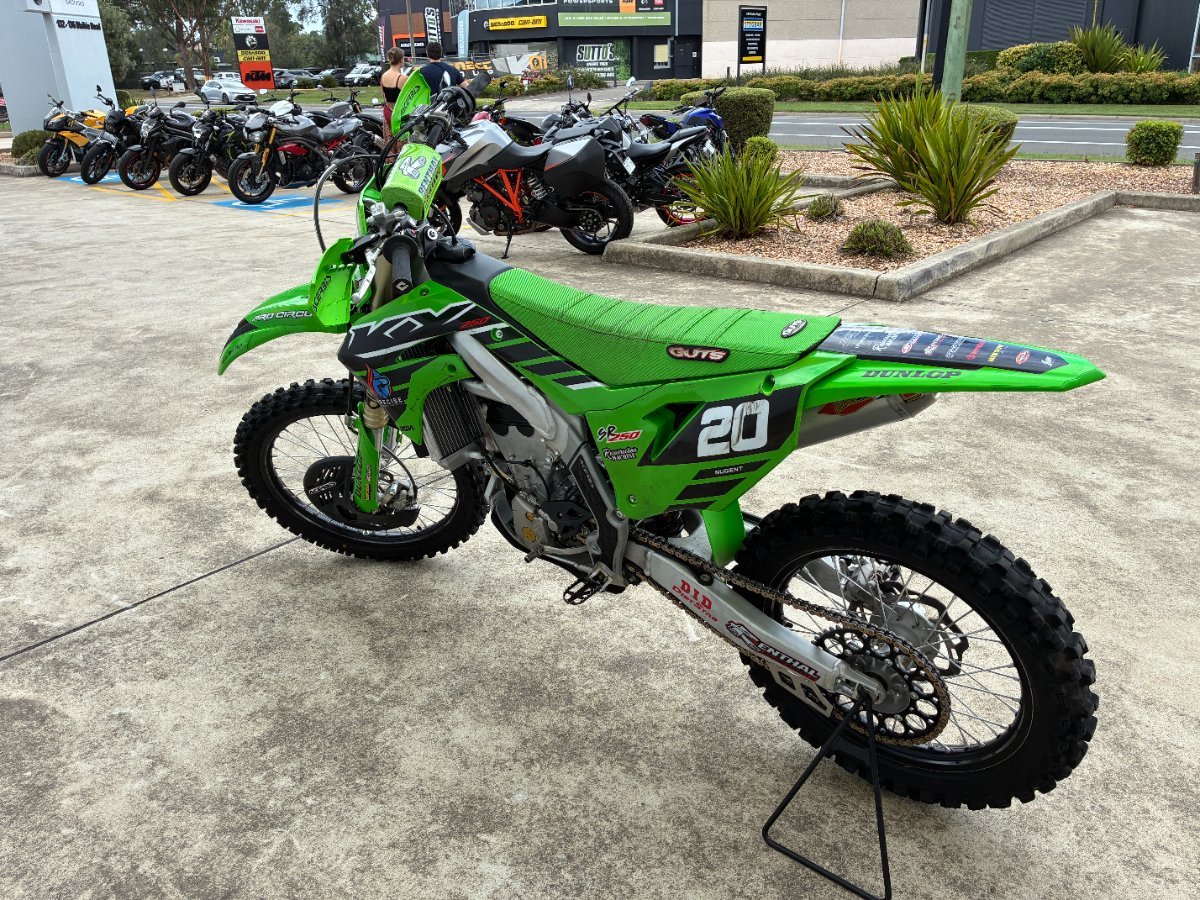 A 2024 Kawasaki KX250 four?stroke motocross bike is now available with just 16 hours of use, presenting as a very tidy and well?looked?after machine that?s ready to hit the track. This bike comes fitted with upgraded MBS suspension for sharper handling and improved stability, bark busters for added protection, and an FMF pipe that not only boosts performance but gives it that crisp, race?ready sound. The KX250 is known for its strong mid?range punch, lightweight chassis, and agile feel, making it an absolute weapon whether you?re training, racing, or just out for a weekend blast. It?s a bike built for fun, speed, and confidence, and with these upgrades it?s even more capable. Finance options are available, making it easier to get yourself on a near?new, high?performance motocrosser that?s already set up and ready to ride.^With up to a 3 year mechanical protection plan and the most competitive finance and insurance packages available, as Australia?s largest motorcycle retailer no one makes it easier to purchase a used Motorcycle. Plus we can organise to have your bike delivered directly to your door anywhere in Australia through our dedicated motorcycle freighters. This Approved Used Bike comes with a 49-Point Quality Inspection, 2-Day FREE Exchange and 90 Day Mechanical Protection Plan extension when you purchase a 3 year plan. Ensuring peace of mind, ease & convenience. An Approved Used Bike is the best choice in Australia for your next bike. Why buy elsewhere?